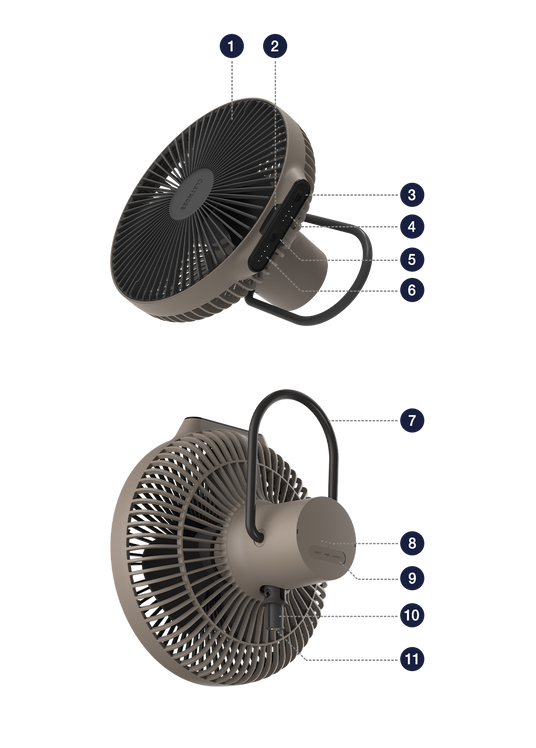 The V1040, sharing its design with the V600, comes with a bigger battery and advanced technology. It features a power bank function and a remote control with magnetic attachment. This fan/air circulator offers 4-step wind speed settings, a 1-4 hour timer, and various mounting options. It’s a powerful and versatile solution for air circulation, suitable for all seasons.
